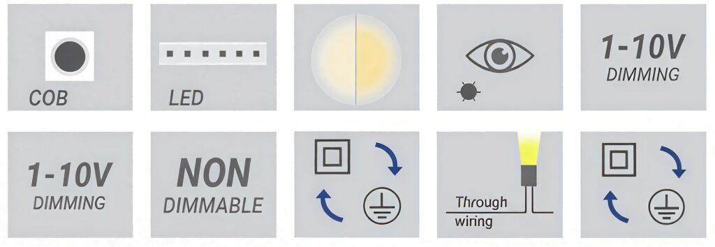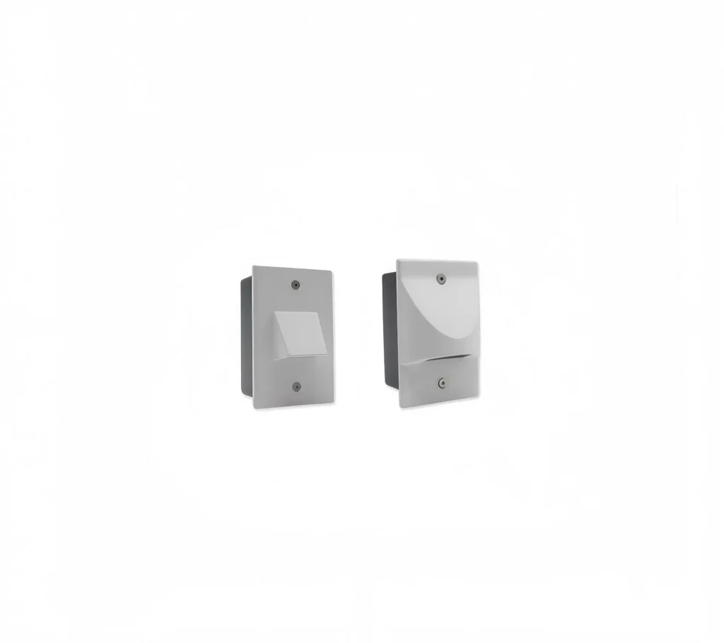 Contemporary way finding fixture for glare-free visual comfort. Sophisticated design, with minimal footprint and available with optional surrounds and supply solutions.